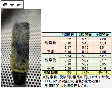 こちらは焼け取りの改善(モップ)になり、生産性向上・品質向上の事例です。